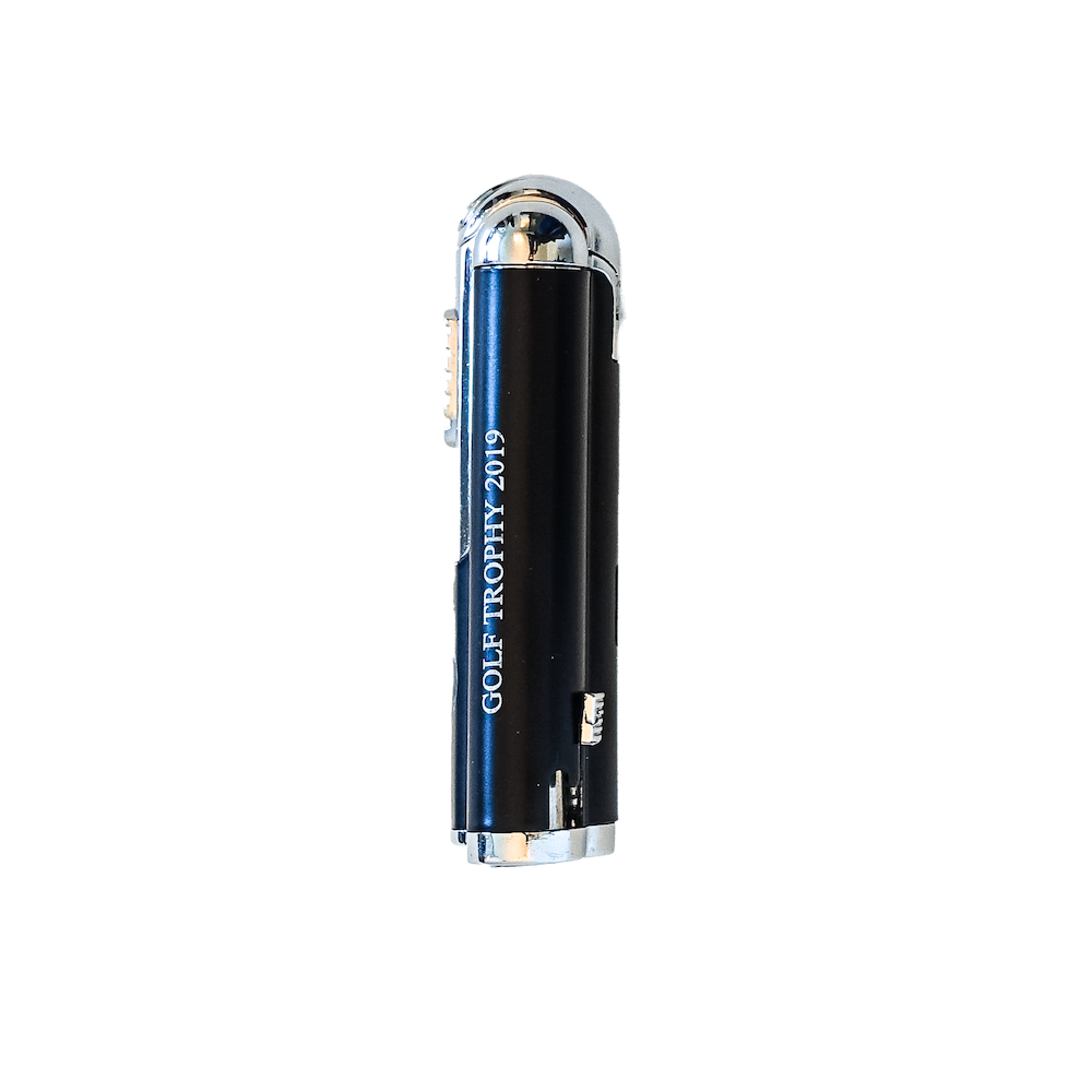 Mit exakter Lasergravur lassen sich die Tycoon Jet-Feuerzeuge (erhältlich in den Farben silber, schwarz und blau) seitlich und vorne nach Deinen Wünschen beschriften.