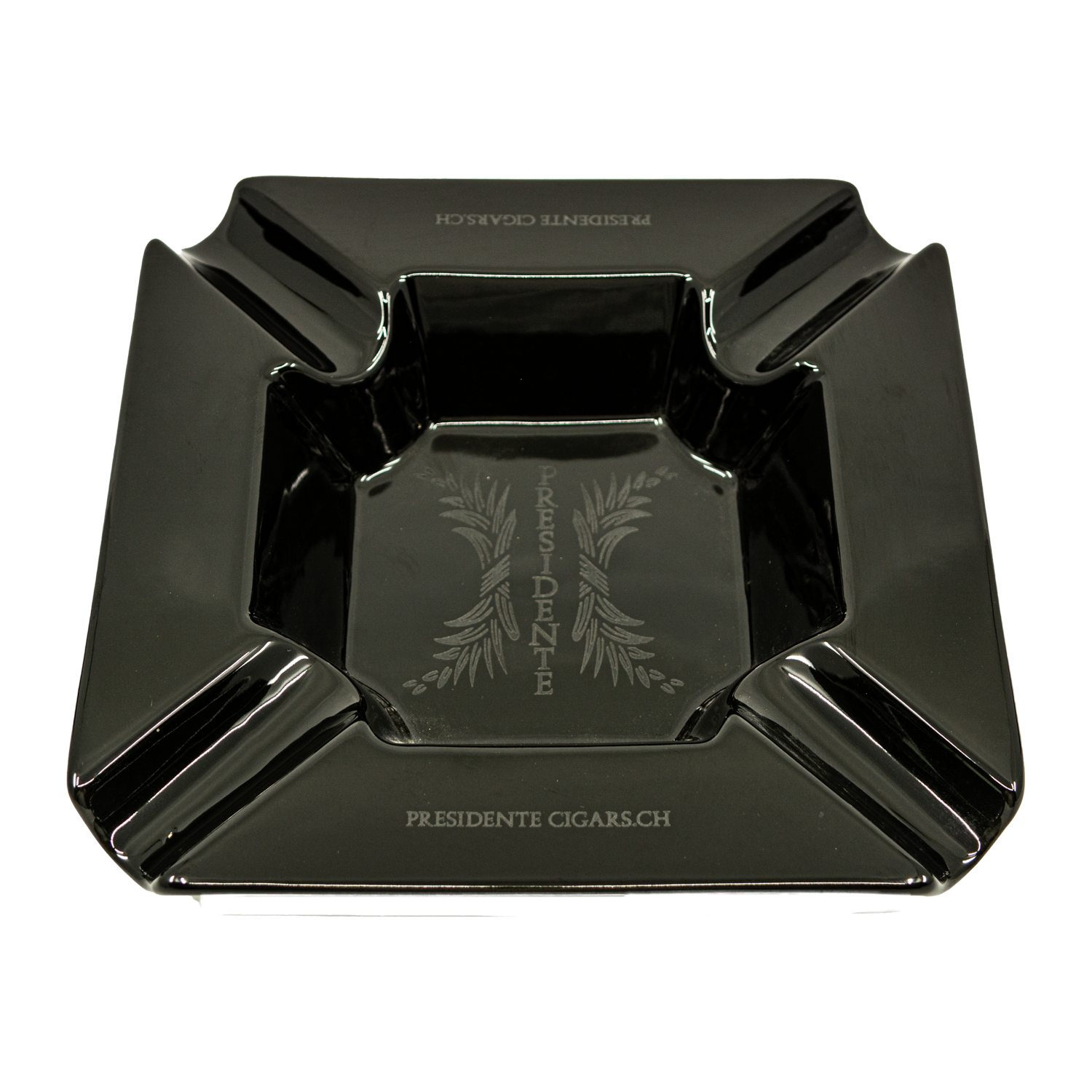 Mit exakter Lasergravur lässt sich der schöne PRESIDENTE Ash Tray aus schwarz glasiertem Keramik nach Deinen Wünschen beschriften.