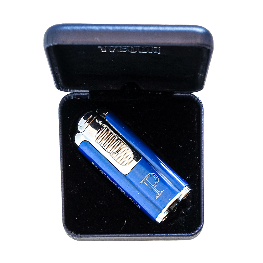 Label Cigars in den 4er Kistchen sind wahlweise im Standard PRESIDENTE Kistchen (blau) oder gegen Aufpreis im personalisierten Private Label Kistchen (nature gelasert) erhältlich.