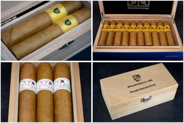 Für die Labelcigarren kannst du Deine Cigarre aus unserem Sortiment aussuchen. Anschliessend wählst Du die Grösse und Art der Kiste sowie die Farbe und das Motiv auf der Bandarole. Innerhalb von fünf Werktagen sind in feinster Handarbeit Deine persönlichen Labelcigarren bereit.